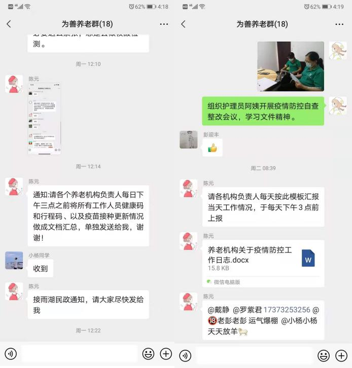 各長者之家實時根據(jù)各級政府要求,嚴(yán)格落實封閉式管理,線上通過家屬群、微信;線下通過張貼對外通知及政府文件,并做好老人及家屬的解釋工作,封院管理,所有工作人員停休待崗,24小時入駐機構(gòu),做好老人及自身防護(hù)工作。