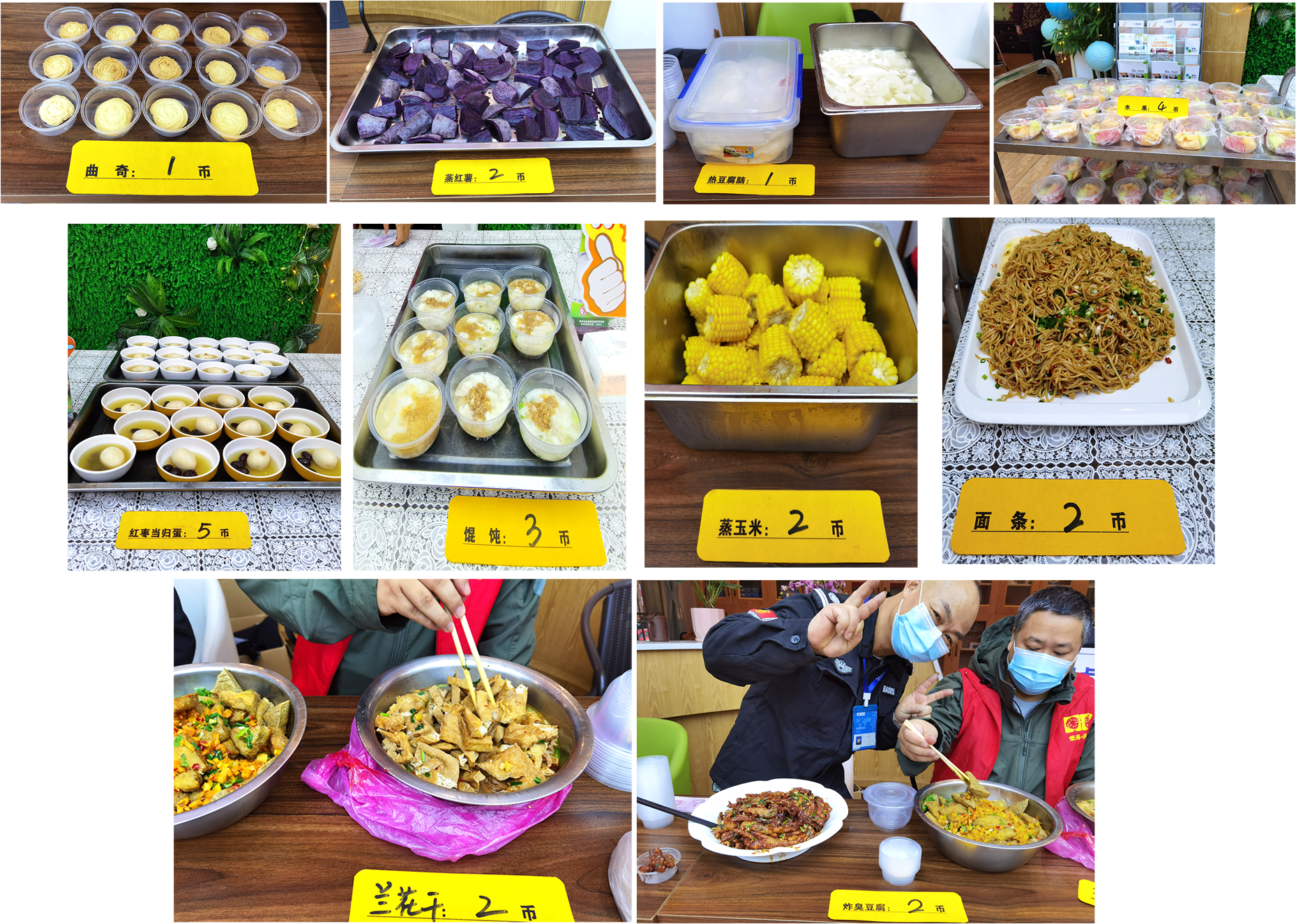 院內(nèi)長(zhǎng)者每人發(fā)放20幸福幣作為基礎(chǔ)幣使用,購(gòu)買攤位上的美食。
