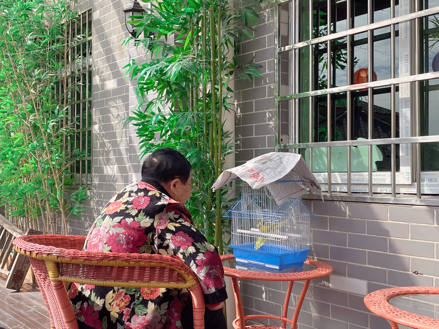 張奶奶熱愛(ài)養(yǎng)小動(dòng)物,愛(ài)護(hù)小生物,她養(yǎng)了一只小鸚鵡,天天給小鳥(niǎo)喂食喂水,小鳥(niǎo)在籠子里活潑亂跳嘰嘰喳喳,非??蓯?ài),經(jīng)常是一群老人圍著看,非常感謝張娭毑。
