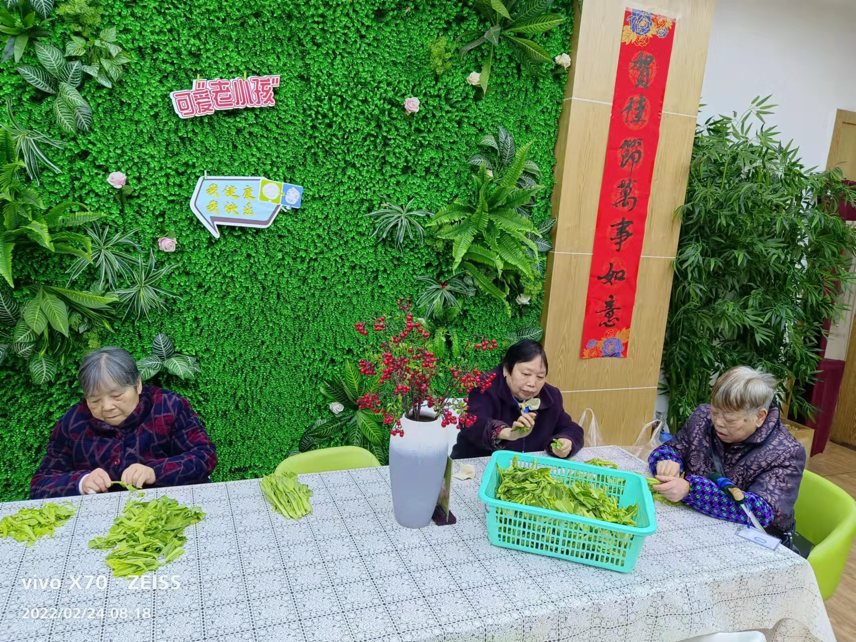 張淑湘奶奶帶頭為食堂里擇油菜做紅事,帶動(dòng)了銀海一大批老人也來(lái)?yè)癫?,一個(gè)學(xué)雷鋒做紅事的集體擇菜活動(dòng),迅速的開(kāi)展起來(lái)了。大家在一起擇菜非常熱鬧、非常高興、非??鞓?lè)。大家七嘴八舌談起如何擇菜的問(wèn)題。有個(gè)奶奶說(shuō):擇油菜桿子要撕皮,和皮吃咬不動(dòng),和皮吃不舒服。有的奶奶說(shuō):擇油菜桿子不撕皮還好吃些,有嚼勁,好吃。還有的說(shuō):擇菜,擇不擇皮要看實(shí)際情況,老桿子要去皮,嫩桿子就不要去皮了。還有一位老爺爺說(shuō):去不去皮不重要,重要的是炒出來(lái)油菜好吃。我們廚房里劉大廚,炒出來(lái)的油菜,撕皮不撕皮都好吃,劉師傅炒出來(lái)的菜,不管葷菜素菜都好吃。在一片熱鬧的閑談中,不知不覺(jué),拾多斤油菜就擇完了。