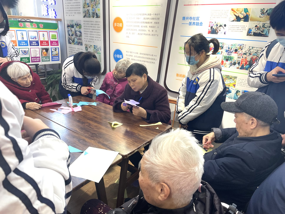 當(dāng)爺爺奶奶們看到一張張青春充滿活力的臉龐圍繞在他們周圍,心中也不由得輕快了許多。有同學(xué)自告奮勇,提出為爺爺奶奶表演節(jié)目,于是一幕幕精彩的畫面,輪番上演。熱情洋溢的拉丁舞,朝氣蓬勃的紅歌合唱,青春的力量無不感染著爺爺奶奶們,那一刻他們的激情也被點燃了,他們忘記了吃飯的時間,甚至不覺得身體疲憊,最后在依依不舍的掌聲中歡送走了這群活力滿滿的孩子們。