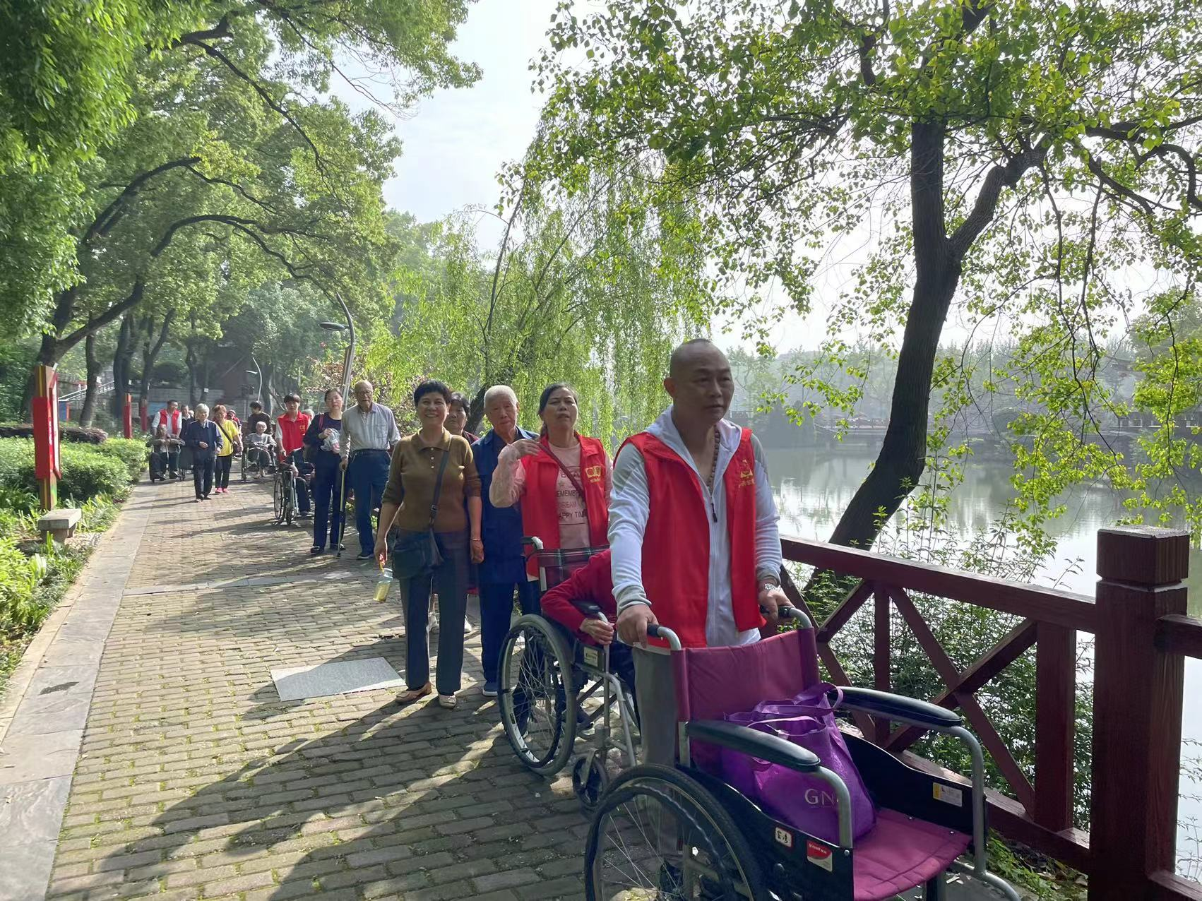 早上八點半,銀海倆寶貝旗下福利社區(qū)院點/古梁巷社區(qū)院點的爺爺奶奶懷著激動的心情在公司車輛的接送下陸續(xù)抵達(dá)雨湖公園門口集合,爺爺奶奶們個個臉上洋溢著燦爛笑容,期待著這場春游活動。在倆寶貝工作人員、部分家屬朋友及雨湖公園管理處黨支部工作人員的陪同下,老人們繞雨湖公園湖邊而行,一路美景盡收眼底。
