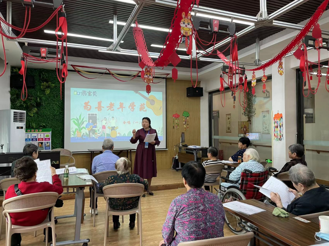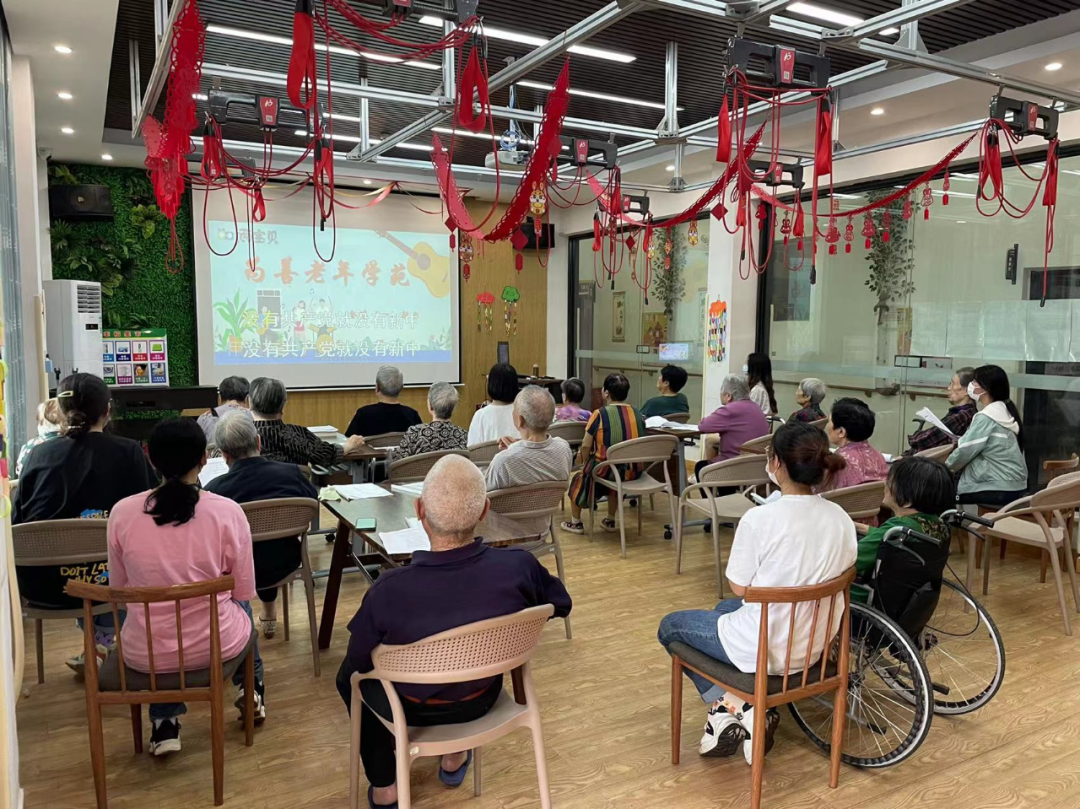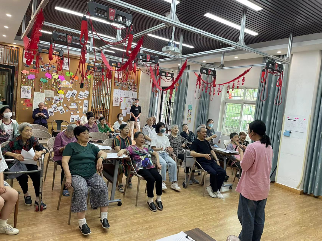 將“老年大學(xué)”開辦至養(yǎng)老機(jī)構(gòu)內(nèi)部,結(jié)合長者們的興趣愛好和學(xué)習(xí)需求,開設(shè)興趣課程,讓長者養(yǎng)老不孤單……銀海倆寶貝嘗試與科大木槿感恩支教團(tuán)合作,推動老年人發(fā)展晚年興趣愛好,培養(yǎng)積極的生活態(tài)度,在“精神養(yǎng)老”模式上做出新的探索。