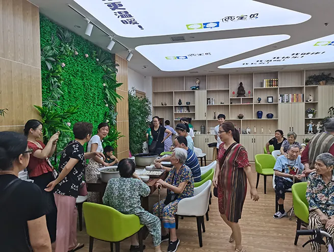 精彩的活動結(jié)束后,爺爺奶奶們來到餐廳,大家一起為爺爺奶奶們送上新鮮出爐的餃子,熱熱鬧鬧的,就像一家人在一起過年,特別溫暖。